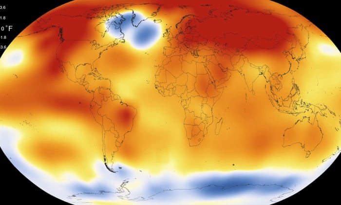 This illustration obtained from NASA on January 20, 2016 shows that 2015 was the warmest year since modern record-keeping began in 1880, according to a new analysis by NASA’s Goddard Institute for Space Studies. Photograph: HANDOUT/AFP/Getty Images Dana Nuccitelli