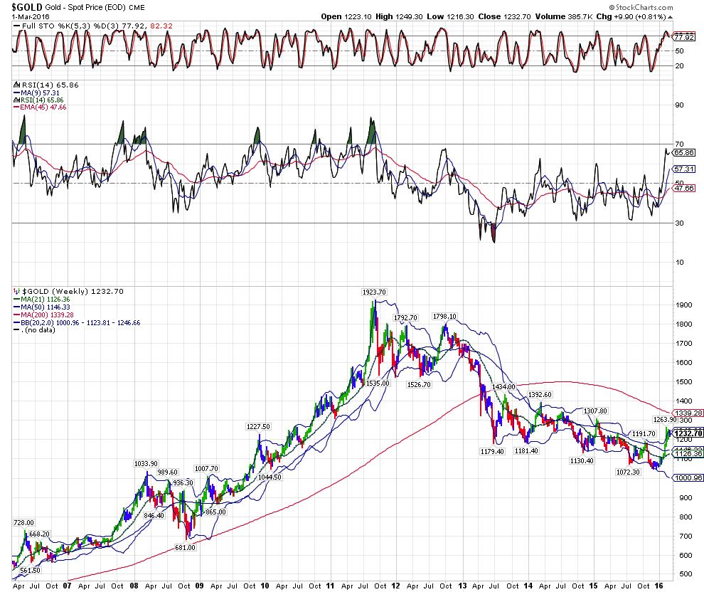 The Weekly Gold Chart is also extremely bullish gold is start this morning again at the top of the WEEKLY Bollinger Band and the weekly RSI is showing more bullish momentum than at any time since the price high in Gold at $1923 in 2011