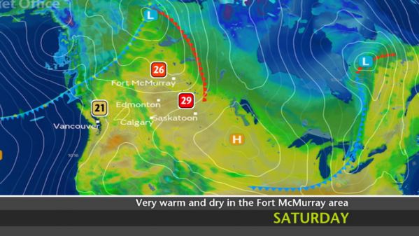 Rising temperatures and dry conditions today will likely hinder fire relief efforts in #Alberta.