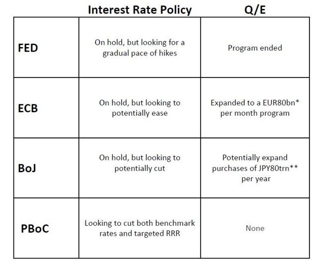 Source: DoubleLine, Bloomberg *Approximately 92 billion U.S. dollars as of April 30, 2016, **Approximately 752 million U.S. dollars as of April 30, 2016 FED: Federal Reserve, ECB: European Central Bank, BoJ: Bank of Japan Q/E: Quantitative Easing EUR: Euros, JPY: Yen PBoC: People's Bank of China