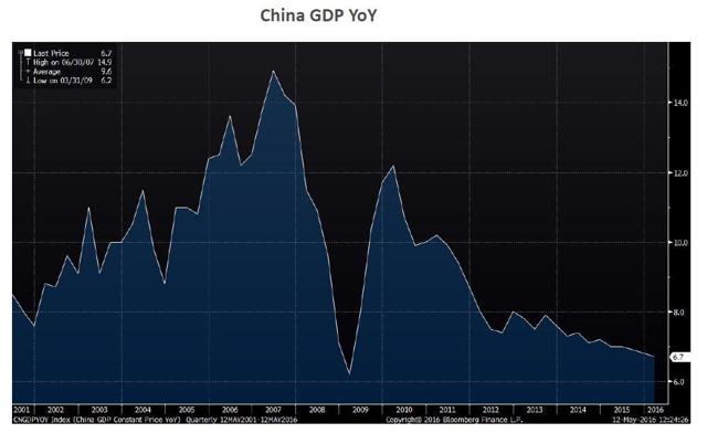 Source: DoubleLine, Bloomberg Dates: 06/30/2001 to 03/31/2016 YoY = Year over Year China GDP or the CNGDYOY Index is China's Gross Domestic Product