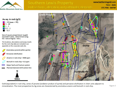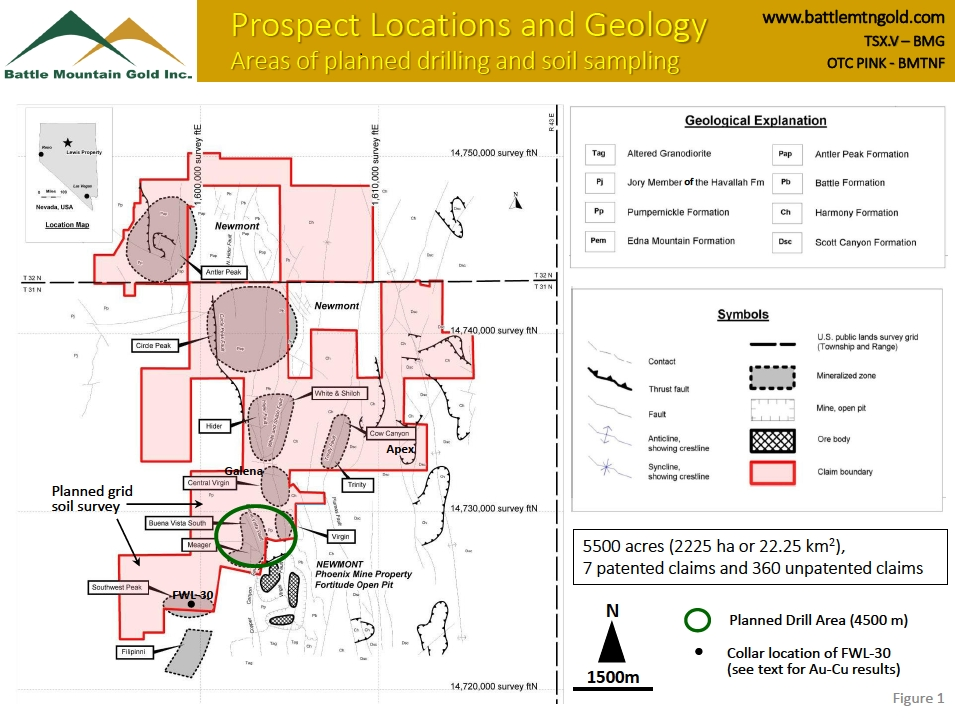 Battle Mountain Gold (BMG-V) June 21, '16 is pleased to announce recent exploration activities and plans for future work in the Lewis gold-silver property, which lies near the town of Battle Mountain in Nevada.
