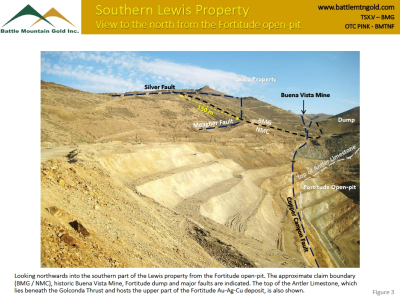 2 This information about Newmont's Fortitude mine is drawn from Newmont's publicly disclosed sources cited. Newmont's Fortitude mine is discussed in Section 15.1 of Battle Mountain's 2014 43-101 Report, which includes the statement, "The geologic information from the adjacent Phoenix [Fortitude] Mine deposits and the comparison with the adjoining Lewis property is in no way indicative that a mineral deposit of similar size or grade does occur or will be found on the Lewis property". |