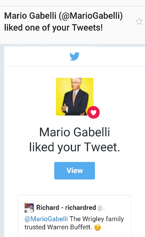 Mario Gabelli one of my investing icons I look up to, liked my response. Himself or managed ?
