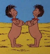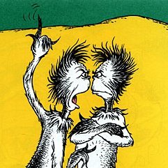 The Zax are characters from the Dr. Seuss books. They are stubborn and arguable and have messy hair and hairy bodies. They live in the Prairie of Prax. Varieties of Zax include a north-going Zax and a south-going Zax. Due to their stubbornness, they refuse to go in any direction other than their assigned directions. If a south-going Zax encounters a north-going Zax, they cannot solve their issue and the world progresses without them, such as a highway being built over them.