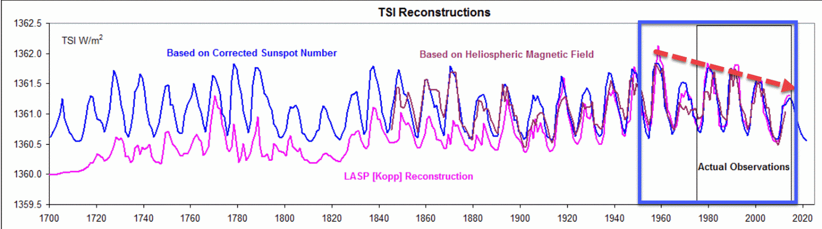 Figure 5 | TSI estimated and observed. Source: Leif Svalgaard