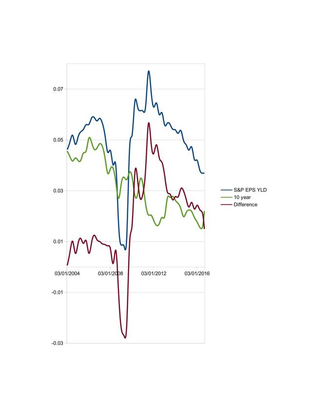 Above you have a chart showing the S&P 500 earnings yield versus the 10 year treasury. This is called "the Fed model."