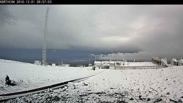 MAUNA KEA, Hawaii -- Winter has arrived on the summits of Mauna Kea and Mauna Loa, where snow began accumulating overnight with up to a foot expected, CBS affiliate KGMB reports.
