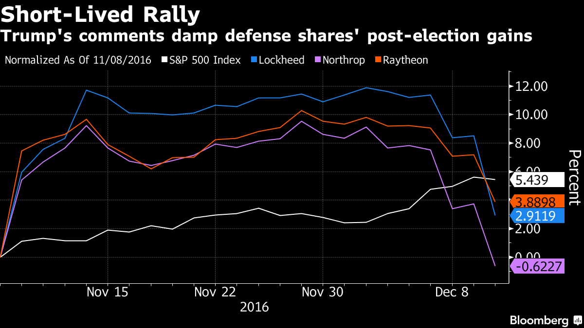 Read Replies (1) | Respond to of 219574 Koan Is This worthy of praise for Trump? =================================Trump Attacks Lockheed’s F-35 Jet in Blow to Defense Stocks by Julie Johnsson , Anthony Capaccio , and Rick Clough December 12, 2016, 8:53 AM EST December 12, 2016, 1:36 PM EST Morning tweet says program’s costs are ‘out of control’ Aircraft program joins Boeing’s Air Force One in crosshairs Trump: F-35 Jet Program Costs Are 'Out of Control' Trump: F-35 Jet Program Costs Are 'Out of Control' Defense stocks plunged as President-elect Donald Trump took aim at another high-profile military program: Lockheed Martin Corp.’s F-35 fighter jet, the Pentagon’s most expensive weapons system. “The F-35 program and cost is out of control,” Trump posted Monday on Twitter. “Billions of dollars can and will be saved on military (and other) purchases after January 20th,” inauguration day. Trump’s criticism of defense program costs has tempered a post-election rally driven by his call on the stump for a larger armed force and greater fleets of combat ships and fighter jets. He made similar complaints on the “Fox News Sunday” television program and on Saturday posted a link to a Washington Post article about a Pentagon report on $125 billion in administrative waste. The latest broadside reinforced Trump’s willingness to attack big U.S. companies. He assailed Boeing Co. last week over the development budget for the new Air Force One and had badgered United Technologies Corp. over a plan to move some U.S. jobs to Mexico in its Carrier air-conditioning unit. Carrier later pared its workforce shift after getting state aid from Indiana. He also recently vowed to drive down drug prices. Lockheed fell 3 percent to $251.83 at 1:33 p.m. in New York. Northrop Grumman Corp., which is a major supplier to the F-35, and Raytheon Co. at their worst tumbled the most since August 2015. United Technologies, whose Pratt & Whitney unit makes engines for the plane, was little changed. The Standard & Poor’s Aerospace and Defense Index declined 1.2 percent. By targeting Lockheed, Trump took aim at the world’s biggest defense contractor while serving notice to budget hawks that his administration will pay attention to military cost overruns . The remarks also signaled that the Pentagon’s planned ramp-up of F-35 production this decade isn’t guaranteed. ‘Wide-Reaching’“I think one of the things we’ve seen over the last couple weeks with the president-elect is a continued focus on keeping costs down for taxpayers,” Trump spokesman Jason Miller said during a phone briefing with reporters Monday. While plans are being determined, “I would expect this to be wide-reaching and impact all of government.” The $379 billion Joint Strike Fighter is the first jet created to serve the vastly different combat missions of the Air Force, Navy and Marines. Like many complicated military programs, the jet has been plagued by delays and bugs in its cutting-edge technology. The Pentagon’s top weapons tester, Michael Gilmore, has warned officials in at least four memos since August that the F-35’s development should be extended past next year because of continued deficiencies to its combat systems, weapons accuracy and air-to-ground gun. Read more: Challenges for the F-35 program Still, the perception of out-of-control costs isn’t accurate, according to Byron Callan, a defense analyst at Capital Alpha. “We don’t believe investors should panic over the program’s prospects based on a single Trump tweet,” he said in a note to clients Monday. Costs DeclineThe F-35’s costs have already fallen by 60 percent, according to Lockheed Martin, and by decade’s end the company expects to manufacture the aircraft for about $85 million each. That’s the same expense as less-capable fourth-generation fighters. “We understand the importance of affordability, and that’s what the F-35 has been about. But more importantly, it’s the amazing technology,” Jeff Babione, executive vice president and general manager of the F-35 program, said Monday. “We look forward to any questions the president-elect may have.” Lockheed and its suppliers have poured billions of dollars into an effort to bring per-plane production costs in line with current generation fighters, slicing $19.6 billion from the program’s total bill since 2014. The total estimated acquisition cost has fallen by 4.9 percent to $379 billion. “My memory goes back seven years ago to a development program way over cost and way behind,” Defense Secretary Ashton Carter, who was the Pentagon’s top weapons buyer at the time, said in February. After much effort, the fighter jet is on track to become “what it’s supposed to be: not only the best tactical aircraft in the world, but the most affordable.” The F-35 Lightning II is Lockheed’s largest source of revenue, accounting for 20 percent of sales. The company also is counting on the stealthy fighter to propel its international growth. Beyond the Pentagon, more than 600 additional aircraft are to be sold to partners such as the U.K., Australia, Japan and Italy.