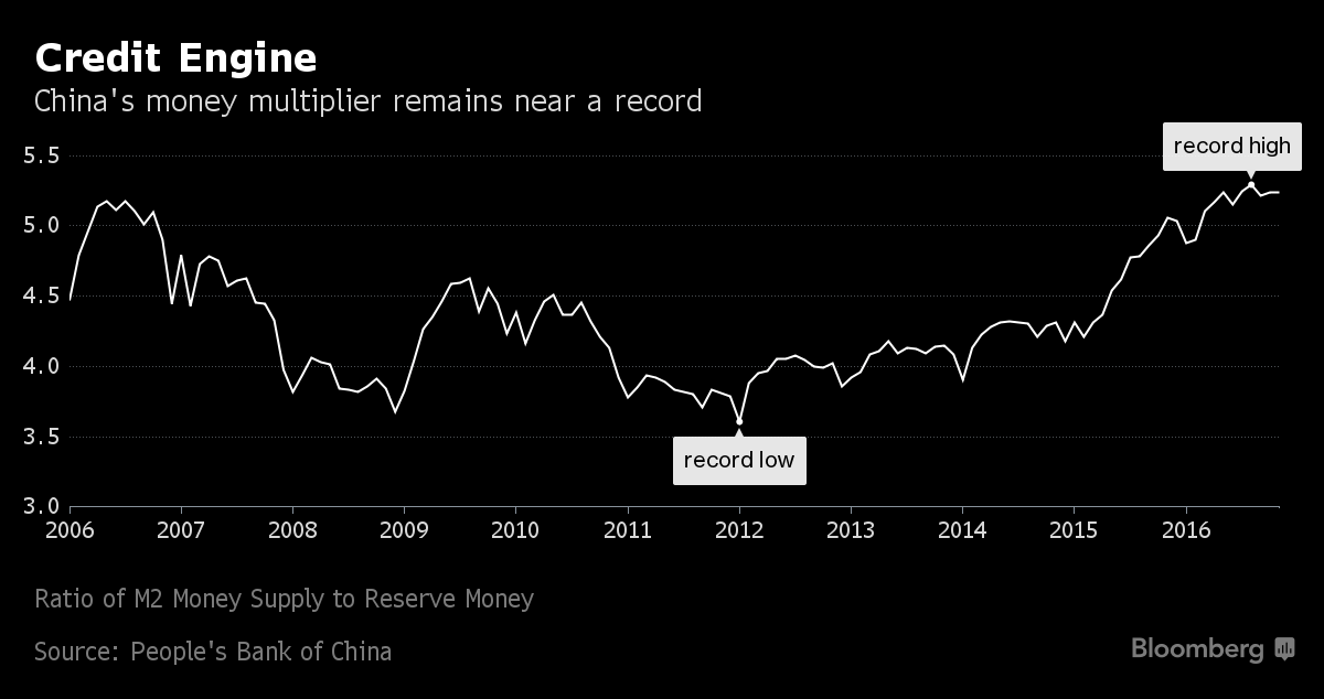 To: ggersh who wrote (127605 ) 1/3/2017 12:11:35 PM From: elmatador Read Replies (1) | Respond to of 220281 China’s Credit Engine Is Running Out of Gas HSBC sees tighter regulations, rising rates, liquidity squeeze The People’s Bank of China faces a reckoning after revving its credit engine for years. January 3, 2017, 8:01 PM GMT+4 Three conditions suggest traditional financing and shadow banking are due to cool: Restrictions on property markets are poised to start weighing on mortgage issuance; bond market turbulence has spurred widespread cancellation of new corporate issues; and banks face more curbs on selling wealth-management products amid a regulatory tightening. With economic expansion on pace to meet the government’s objective and inflation pressure rising, leaders are signaling tighter monetary policy as they seek to reduce risks. The PBOC also cut language from its last quarterly statement saying it would reduce lending costs. "China’s credit engine is running out of gas," said Frederic Neumann, co-head of Asian economic research at HSBC Holdings Plc in Hong Kong. "Regulatory tightening, higher interest rates and a liquidity squeeze will likely weigh on credit growth in coming months." President Xi Jinping and his top economic lieutenants last month pledged prudent and neutral monetary policy and proactive fiscal support for 2017 along with sharper focus on avoiding financial risks and asset bubbles. Meanwhile, the PBOC has been allowing a steady increase in money-market rates to squeeze leverage in the bond market, prompting firms to cancel or postpone bond selling of more than 100 billion yuan ($14 billion). Read More: China Inc. Struggle to Sell Bonds Poses Quandary for Economy With the central bank’s shift toward selective tightening, "official endorsements from the top leadership tend to consolidate these positions, at least in the near term," said Song Yu, the Beijing-based chief China economist at Beijing Gao Hua Securities Co., the mainland joint-venture partner of Goldman Sachs Group Inc., wrote in a recent report. Tighter policy also better positions the PBOC to keep the yuan stable after its steepest annual plunge against the dollar in more than two decades. That pressure won’t abate soon with the Federal Reserve resuming interest rate increases and the European Central Bank and Bank of Japan no longer adding to their monetary easing. Read More: PBOC Shifts to Selective Tightening to Curb Financial Risks New regulations aimed at shadow banking activity are also set to weigh on credit creation. Starting this quarter, the PBOC is including wealth management products held off bank balance sheets in its framework for assessing risks and credit expansion for lenders. Citigroup Inc. estimated in October that the new rules will apply to 13 trillion yuan of assets. That means banks must rein in their credit growth to comply with capital adequacy requirements, reducing funding in the financial system. In that environment, funding levels in markets will be a key risk for 2017, and a neutral monetary policy stance could complicate financing for smaller companies, according to Ming Ming, head of fixed-income research at Citic Securities Co. in Beijing and a former PBOC official. Funding challenges remain a problem for small businesses, with nearly 60 percent reporting shortfalls in December, the National Bureau of Statistics said in a statement Sunday. "Imbalances will worsen," Ming said. "There will be liquidity shortages at certain time points, such as quarter-end and ahead of long holidays." Those new rules for wealth products are also poised to affect how much economic mileage China gets from the creation of new credit. This so-called money multiplier, a ratio of the money supply to total bank reserves, stood at 5.24 in November, just shy of the 5.29 record in August, according to PBOC data compiled by Bloomberg. That means each yuan the central bank pumps into the economy generates more than 4 yuan through the process of loans generating new deposits, that then create further loans. A reversal in that multiplier would mean tighter financial conditions and looser fiscal policy, resulting in slower economic growth, said HSBC’s Neumann. "China’s economic growth remains highly credit intensive," so even a marginal tightening would have a disproportionate effect, he said. Construction and broader economic activity may start feeling a drag by the second quarter, prompting more fiscal support to aid growth. To be sure, credit still flows freely. The broadest measure of new lending jumped in November by the most since March, boosted by borrowing for home loans and resurgent shadow banking . If growth looks weak, policy makers can still step on the gas with credit. And new credit so far isn’t reflecting the tightening bias of policy, according to Wang Tao, head of China economic research at UBS Group AG in Hong Kong. Aggregate financing, China’s broadest measure of new lending, rose to 1.74 trillion yuan in November, the most in eight months, boosted by borrowing for home loans and a resurgence of shadow-banking activity. The jump was double the prior month’s rise. December’s data are likely to be released next week. — With assistance by Yinan Zhao