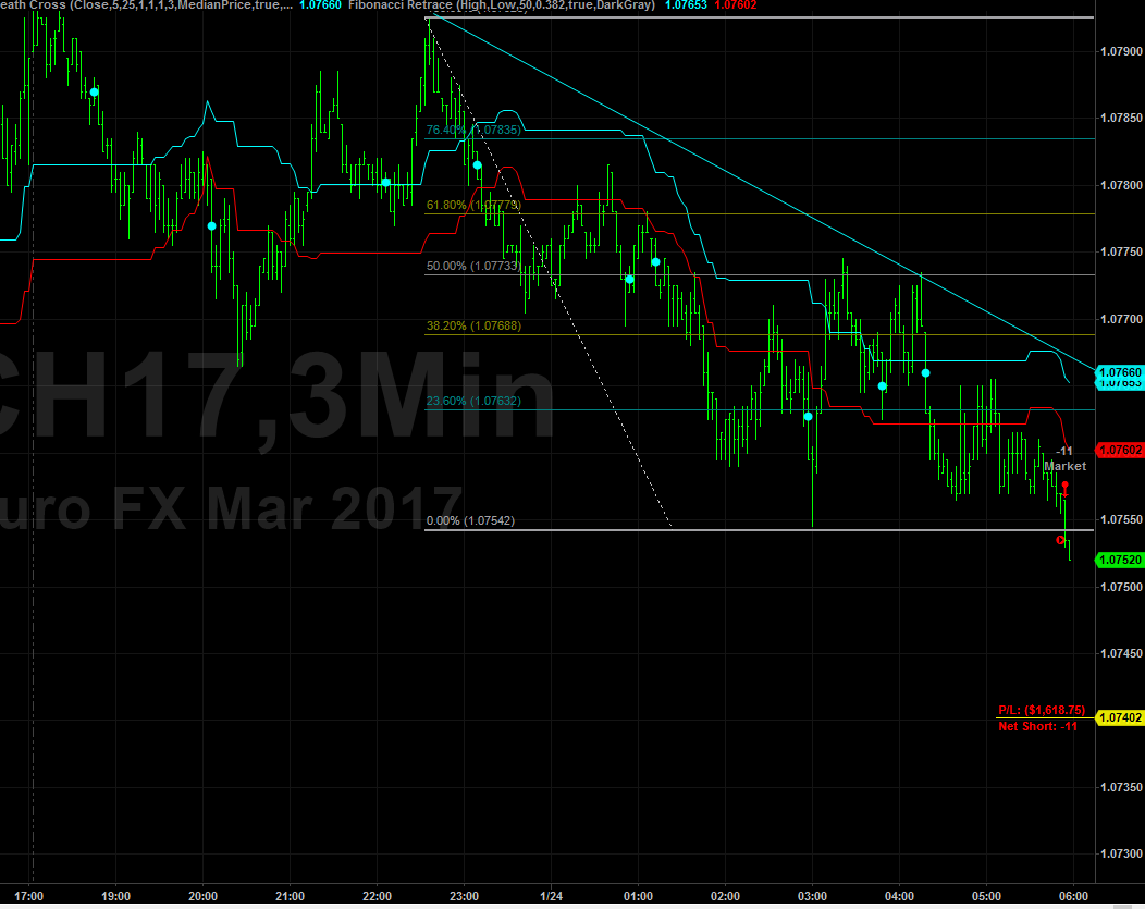 EUR/USD 3 minute Globex appears to be breaking down...