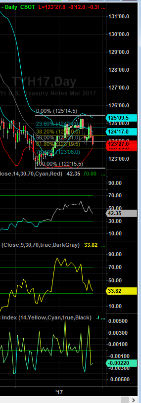 Here is a daily chart of the TNX the 10 year note yield which is simply the inversion of the 10 year note futures...... Up in yield = down in price. ( that's the difference that arises from bank bond traders vs. Traditional CBOT bond futures traders.