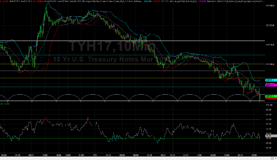 This is a 10 minute chart and the 10 year note has gone straight down in price since you asked about it