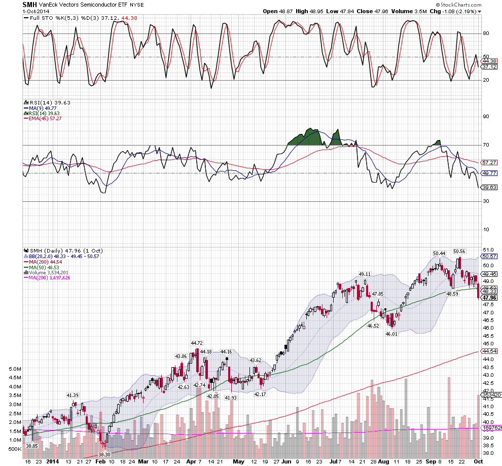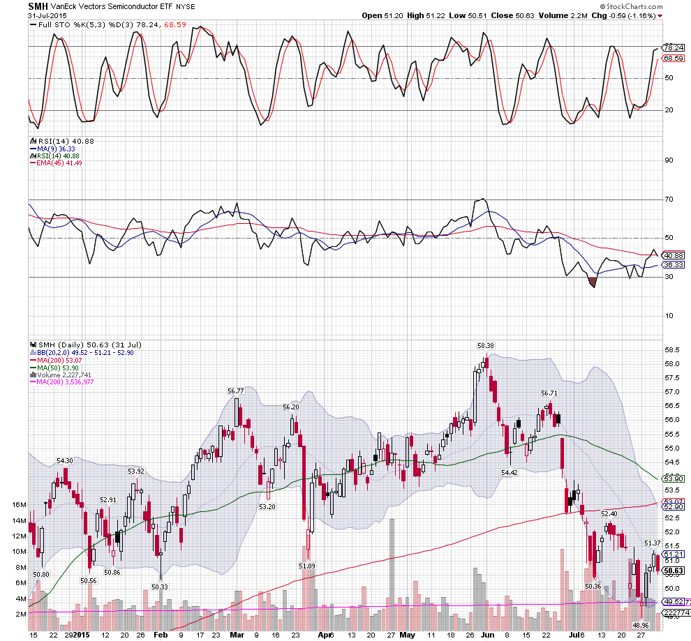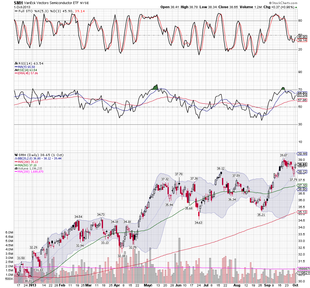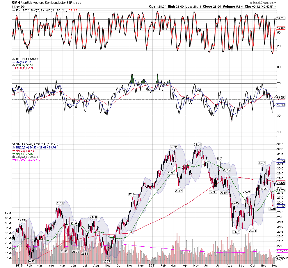 Hi Bob, I looked at some back history of the SMH.... I got curious about a hammer type occurrence when the close was below the lower Bollinger band