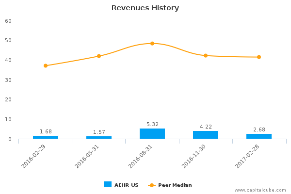 To: Kirk © who wrote (4755 ) 4/18/2017 10:26:06 AM From: robert b furman Read Replies (1) | Respond to of 26710 Hi Kirk, I wonder how these guys exist? FREMONT, Calif., April 13, 2017 (GLOBE NEWSWIRE) -- Aehr Test Systems ( AEHR ), a worldwide supplier of semiconductor test and burn-in equipment, today announced the pricing of its previously announced underwritten public offering of 3,846,154 shares of its common stock at a price to the public of $3.90 per share. In addition, Aehr Test Systems has granted the underwriter a 30-day option to purchase at the public offering price up to an additional 576,923 shares of its common stock to cover over-allotments, if any. All shares of common stock to be sold in the offering will be offered by Aehr Test Systems. The offering is expected to close on April 19, 2017, subject to the satisfaction of customary closing conditions. The total gross proceeds from the offering are expected to be approximately $15 million, assuming no exercise of the underwriter’s over-allotment option. Aehr Test Systems intends to use the net proceeds from the offering (after deducting the underwriting discount and other estimated offering expenses payable by Aehr Test Systems) for general corporate purposes They are serial losers: HighlightsSummary numbers: Revenues of USD 2.68 million, Net Earnings of USD -2.65 million.Gross margins widened from 10.08% to 18.76% compared to the same period last year, operating (EBITDA) margins now -89.63% from -165.12%.Year-on-year change in operating cash flow of -257.38% is about the same as the change in earnings, likely no significant movement in accruals or reserves.Earnings growth from operating margin improvements as well as one-time items.The table below shows the preliminary results and recent trends for key metrics such as revenues and net income growth: Market Share Versus Profits AEHR-US ‘s change in revenue this period compared to the same period last year of 59.87% is almost the same as its change in earnings, and is about average among the announced results thus far in its peer group, suggesting that AEHR-US is holding onto its market share. Also, for comparison purposes, revenues changed by -36.41% and earnings by -82.58% compared to the immediate last period. Market Share Versus Profits AEHR-US ‘s change in revenue this period compared to the same period last year of 59.87% is almost the same as its change in earnings, and is about average among the announced results thus far in its peer group, suggesting that AEHR-US is holding onto its market share. Also, for comparison purposes, revenues changed by -36.41% and earnings by -82.58% compared to the immediate last period. I think they are a great candidate for a short to zero. The stock sale was at 3.90 and the stock is trading above that at $4.45 today???