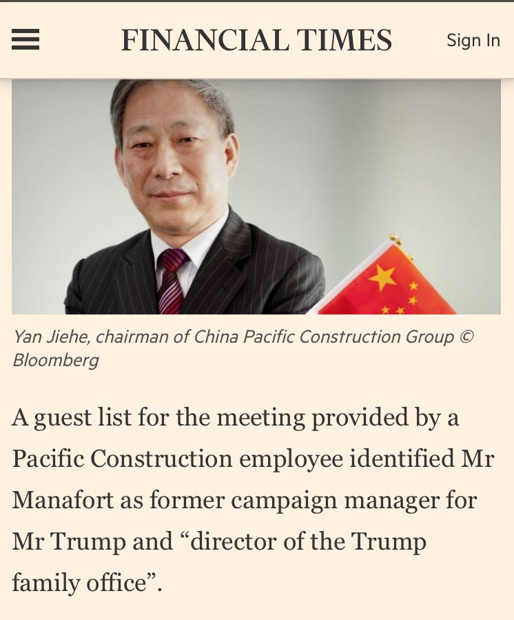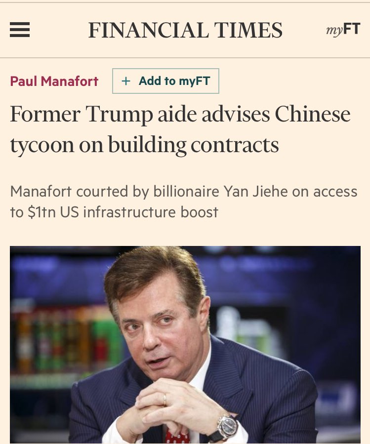 Forget America First!! Manafort courted by Chinese billionaire to lock down US infrastructure contracts ..