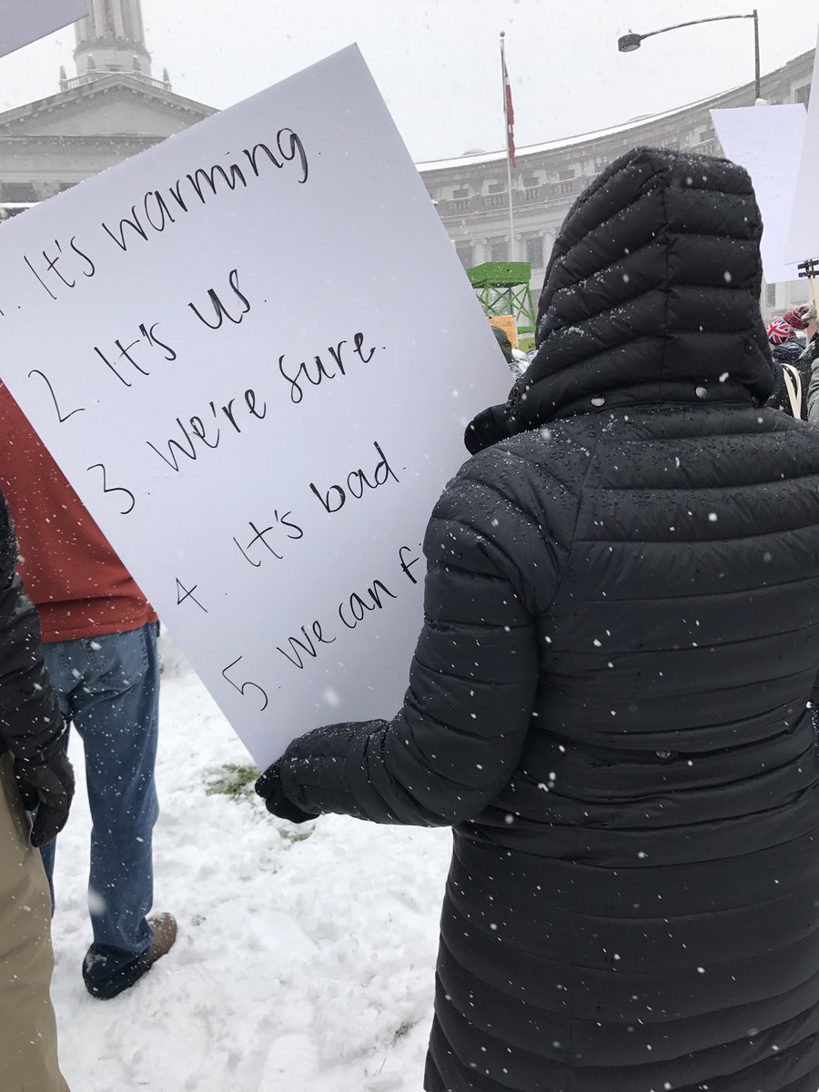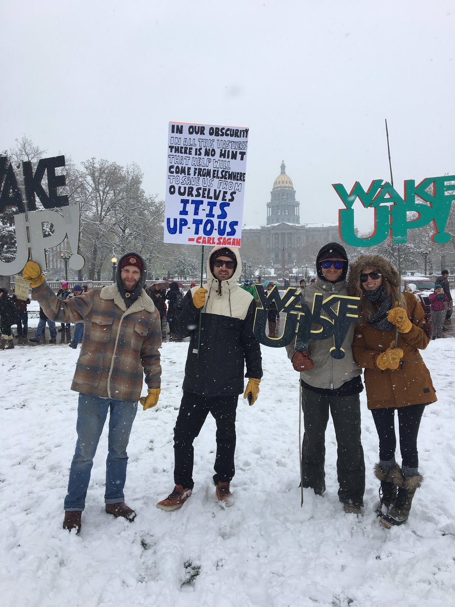 If you march for "science" and against global warming in Denver, don't forget your mittens and long johns. These are the bravehearts who turned out for the People's Climate March. The main march was postponed.