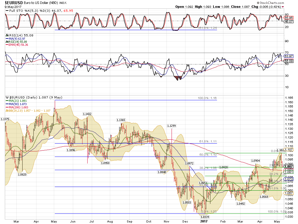 Here is a 15 month chart of the EUR/USD and we can see how stockcharts which keeps track of US trading hours shows a price high of 1.16 on May 3rd of 2016..... which is how we get to a 50% retrace at 1.10.