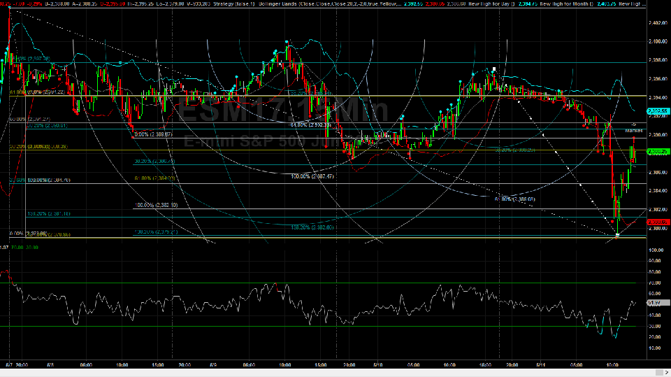 The 15 minute chart of the June SPX has generated 2 early fractals that have generated a 1.1618 price projection and a 1.382 price projection that have been the exact level of the lows of day about 10:33 AM