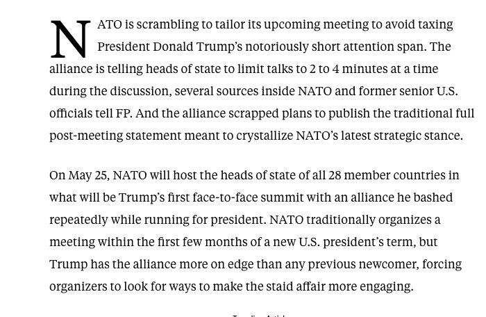 NATO is "scrambling" to tailor its upcoming meeting to avoid taxing Trump’s "notoriously short attention span." t.co