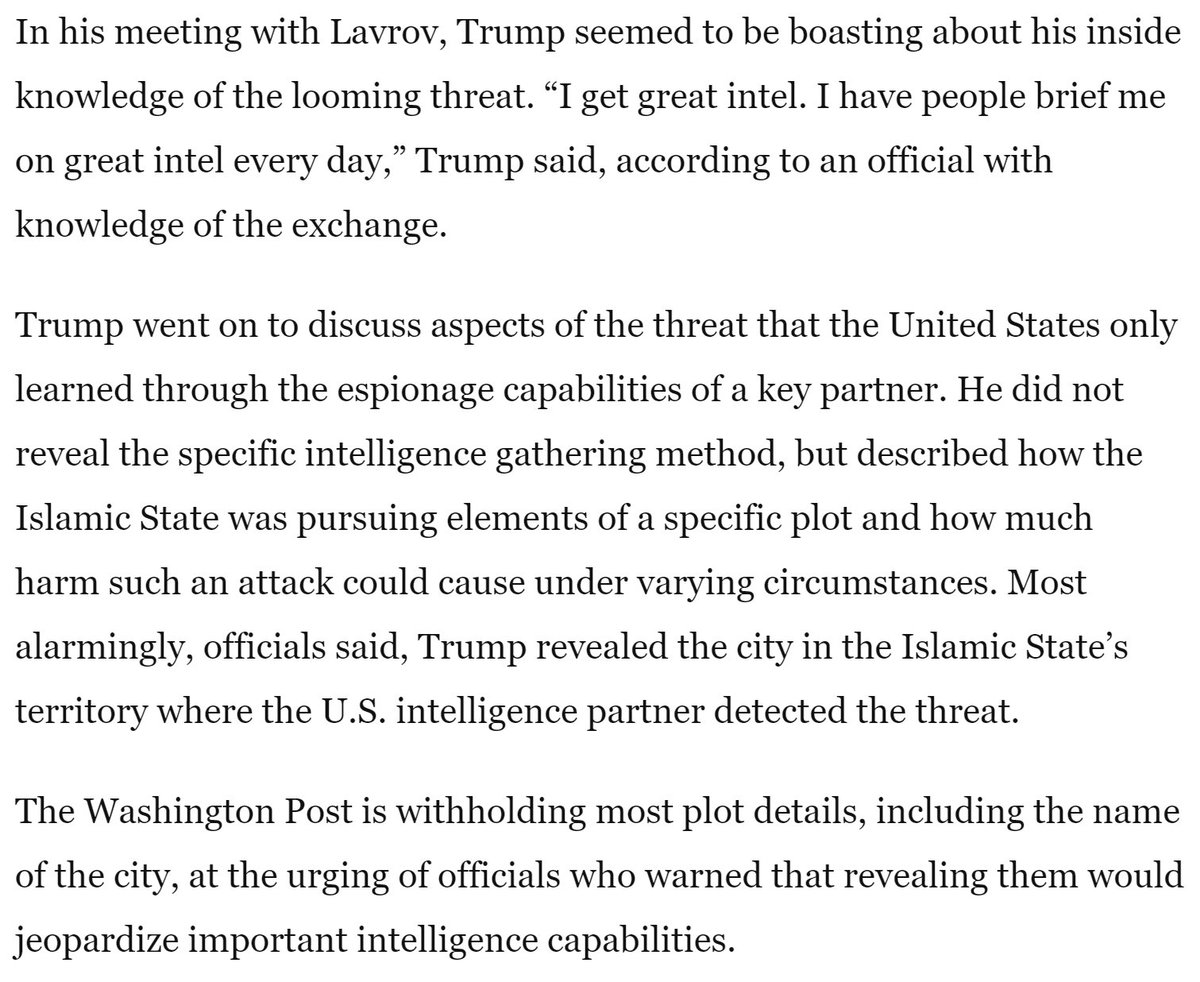 President Trump’s disclosures jeopardized a critical source of intelligence on the Islamic State, officials said
