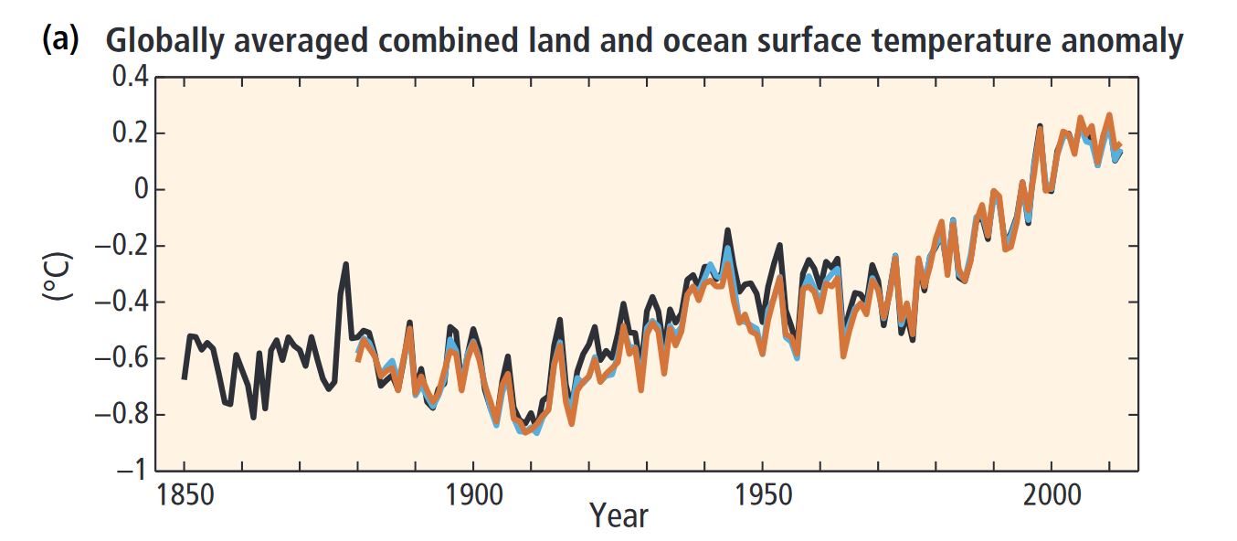 To: i-node who wrote (20292 ) 6/1/2017 10:17:07 PM From: Wharf Rat Respond to of 357998 "Even if CO2 is causing temperatures to increase we know that the increase is not linearly correlated{" Possibly true. The IPCC underestimates global warming A month ago the New York Times insulted its subscribers with a climate change column by Bret Stephens, their new hire from the Wall Street Journal. The bizarre text was mostly a sequence of claims that did not follow from the arguments presented . The column also contained one fact. Which was wrong and later corrected. Stephens claimed: Anyone who has read the 2014 report of the Intergovernmental Panel on Climate Change knows that, while the modest (0.85 degrees Celsius, or about 1.5 degrees Fahrenheit) warming of the Northern Hemisphere since 1880 is indisputable, as is the human influence on that warming, much else that passes as accepted fact is really a matter of probabilities.As a dutiful watcher of Potholer54 , which any real skeptic should be, you know that it is a good idea to check the source and Stephens helpfully provided a link to the Summary for Policymakers of the 5th assessment synthesis report of the Intergovernmental Panel on Climate Change ( IPCC ). This summary mentions the number "0.85" in the sentence: The globally averaged combined land and ocean surface temperature data as calculated by a linear trend show a warming of 0.85 [0.65 to 1.06] °C over the period 1880 to 2012, when multiple independently produced datasets exist ( Figure SPM.1a ). { 1.1.1, Figure 1.1 } Figure SPM.1a. Annually and globally averaged combined land and ocean surface temperature anomalies relative to the average over the period 1986 to 2005. Colours indicate different data sets. Thus Stephens confused the global temperature with the temperature of the Northern Hemisphere. Not a biggy, but indicative of the quality of Stephens' writing. A related weird claim is that the "warming of the earth since 1880 is indisputable, as is the human influence on that warming, much else that passes as accepted fact is really a matter of probabilities. " As quoted above the warming since 1880 is not exactly known, but probably between 0.65 and 1.06 °C. That it was warming is so certain that a journalist may call it "indisputable". There is thus no conflict between probabilities and certainty. In fact they go hand in hand. When scientists talk about uncertainties, they are quantifying how certain we are. However, I did not want to attack the soft target Bret Stephens. The hard target IPCC is much more interesting. They put some thought in their writing. More precisely I have problems when they write in the summary for policy makers: "temperature data as calculated by a linear trend show a warming of 0.85 ". That means that they fitted a linear function to the data — using [[ least squares regression ]] — and used this trend and the length of the period to estimate the total warming over this period. This is a problem because calculating the total amount of warming using a linear trend underestimates global warming.* I show this below for two global temperature datasets by comparing the linear warming estimate with a nonlinear (LOESS) warming estimate. The linear estimate is smaller: For NASA's GISTEMP it is 0.05 °C smaller and for Berkeley Earth it is 0.1 °C smaller. Such linear estimates are well suited for comparing different datasets because it is well defined how to compute a linear trend and the bias will be similar in the different datasets. That is why linear estimates are used a lot in the scientific literature and scientists reading this know that a linear estimate can be biased when the curve itself is not linear. But this was a warming estimate for the summary for policy makers . Policy makers and the public in general should get an unbiased estimate of the climatic changes we have seen and are before us. Tending to underplay the problem is quite typical. There is even an article on climate Scientists Erring on the Side of Least Drama and also The Copenhagen Diagnosis gives several examples such as the very low predictions for the decline in sea ice or the increase in sea level. When it comes the warming found in station data, we did study the main possible warming bias (urbanization) in depth, but hardly did any work on cooling biases that may lead us to underestimate the amount of warming. In a recent study to define what "pre-industrial" means when it comes to the 2 °C warming limit , the authors suggest a comparison period with relatively few volcanoes, which is thus relatively warm. This underestimates the warming since "pre-industrial". The authors wanted to be "conservative". I think we should be unbiased. I understand that scientists want to be careful before crying wolf, whether we have a problem or not. However, when it comes to the size of the wolf, we should give our best estimate and not continually err on the side of a Chihuahua. Related reading Climate Scientists Erring on the Side of Least Drama Why raw temperatures show too little global warming The NY Times promised to fact check their new climate denier columnist?—?they lied * The linear estimate is typically smaller, sometimes a lot, whether the actual underlying function is convex or concave. I had expected this estimate to be always smaller, but noticed while writing this post that for polynomial functions, f(t) = tp, it can also be a few percent higher for p between 1 and 2. Below you can see 4 example curves, where the time runs between zero and one and thus also f(t) goes from zero to one. The total "warming" in all cases is exactly one. The linear estimates are generally less than one, except for the f(t) = t1.5example. The bottom graph shows these linear estimates as a function of exponent p, where you can see that for an exponent between 1 (linear) and 2 (quadratic) the estimates can be a little higher than one, while they are generally lower. Probably Carl Friedrich Gaus