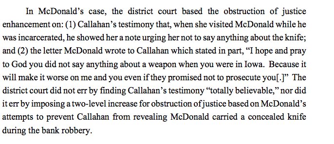 For instance: Eighth Circuit affirmed an obstruction of justice enhancement based partly on an “I hope” statement t.co