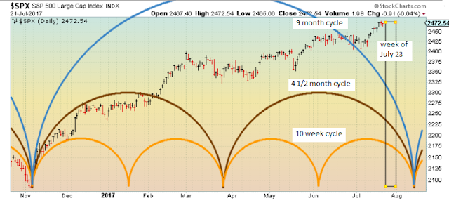 Ox, the 9 month cycle, the 4 1/2 month cycle and 10 week all appear pointing down into late July....early August........