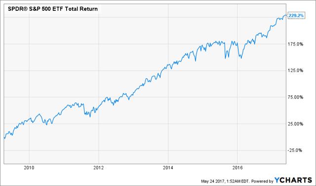 One big problem with the theory is that it relies on a mechanism by which U.S. dollars go from the Fed into the S&P 500-and that mechanism has never been discovered. There are plenty of possible explanations, but they remain unproven. One popular explanation is that cheap credit has caused margin balances to explode, thus resulting in over-levered bets on stocks; charts of high margin balances are often proffered to prove this point. And the numbers sound scary; margin debt was $536.93 billion at the end of March 2017 versus $173.3 billion in February 2009 (CAGR: 13.4%). However, the S&P 500's market cap has also gone up from $8 trillion to $20 trillion in the same time period (CAGR: 10.7%).
