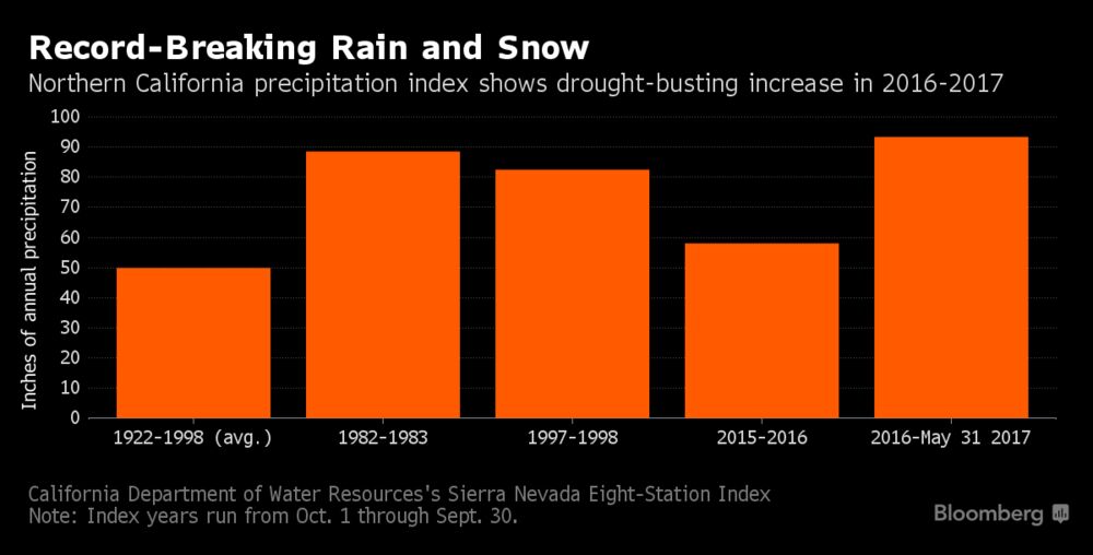 After a six-year drought that made agricultural irrigation a political hot potato, Northern California experienced nearly double the normal rainfall this year, beating the old mark set in 1983.