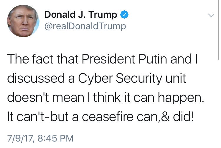 Unpresidented Twit backs away from joint Russian-US cyber security team after one day: