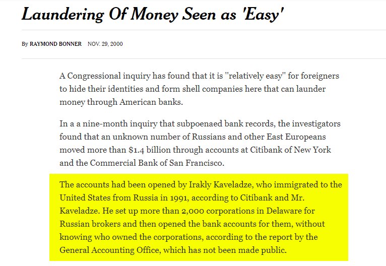 Kaveladze's job: Assist Russian leadership class in looting of their country and hiding it outside of Russia. 2000 anonymously owned companies, with anonymously owned bank accounts,$1.4 BILLION.