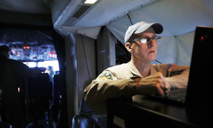 John Sonntag on board Nasa’s Operation IceBridge research aircraft at Thule airbase, Greenland. Photograph: Mario Tama/Getty Images