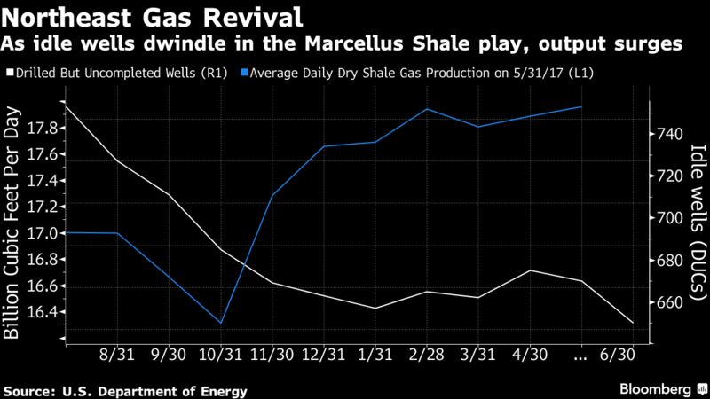 To: Brumar89 who wrote (78635 ) 7/27/2017 2:26:20 PM From: Brumar89 Respond to of 86355 While Oil Patch Bleeds, Gas Drillers Race to Unleash Wells By Jim Polson and Ryan Collins July 24, 2017, 6:09 PM CDT July 25, 2017, 7:33 AM CDT Backlog of unused wells in Northeast plunges and output soars Price gains, new pipes have gas drillers letting wells loose Oil prices have been lousy for so long that U.S. producers are hoarding unfinished wells rather than pumping crude out of them. In the natural gas patch, just the opposite is happening. While the energy slump has idled lots of wells for both commodities, their economics have diverged. Oil remains at half its price in 2014, leading to a record backlog of drilled-but-uncompleted wells spread across shale formations where fracking brought on a surge in crude production. Meanwhile, gas futures are almost double last year’s low, and the so-called fracklog of wells in the Marcellus gas fields of Pennsylvania and West Virginia is shrinking as drillers there unleash supplies to take advantage of higher prices. By the end of June, the fracklog in the Marcellus was the smallest in the three and a half years since government data has been collected. The drop portends a production boom that could imperil bullish gas bets, which jumped to a three-year high in May on speculation that a hot summer, new pipeline capacity and rising exports of the fuel would boost demand. Gas explorers are “putting a down payment on a bull market that companies hope is coming,” said John Kilduff, a partner at the commodities hedge fund Again Capital LLC. They’re “taking the view that prices are going to rebound.” When prices were dropping in 2014 and 2015, drillers left a growing number of wells unfracked in the Marcellus, America’s biggest gas play. With the market up and new pipelines promising to shuttle more of the fuel to market, the backlog has fallen from 831 wells in July 2015 to 643 last month, government data show. Fracking them is the cheapest way to bring on new supply because the money has already been spent to dig the hole. Some of the wells were completed to satisfy delivery contracts, but there was also the incentive of higher prices. Gas futures in New York have rallied 81 percent since touching a 17-year low in March 2016 of $1.611 per million British thermal units. Futures traded at $2.922 as of 8:10 a.m. Tuesday. Not only are the nation’s gas explorers bringing wells online at a faster pace -- they’re also drilling new ones. Output from the Marcellus is set to reach a record 19.8 billion cubic feet a day in August , the U.S. Energy Information Administration forecast this month. Some of that supply is being sold outside the U.S. While the country was a net importer last year, exports of American shale gas have climbed to a record via pipelines to Mexico and Canada and ships carrying the super-chilled fuel to other countries. Still, producers remain cautious after the recent market collapse, which has forced more than 100 oil and gas explorers into bankruptcy since the beginning of 2015, data from Haynes and Boone LLP show. Increased drilling may signal a supply boom and a return to low prices. “It’s like surviving a near-death experience,” Peter Pulikkan, a New York-based analyst for Bloomberg Intelligence, said by phone. “You’re happy to be past it, but you’re still scared out of your mind.” Some drillers who’ve spent millions boring holes through petroleum-rich shale rock are just waiting for new pipelines to come into service before turning on the spigot. Appalachian gas producer Antero Resources Corp. can “fill fairly quickly” the space it reserved on one pipeline, Energy Transfer Partners LP ’s Rover project, Chief Financial Officer Glen C. Warren said in May. Rover, now scheduled to partially start in late summer, has been plagued by setbacks since last year. On Monday, a report showed West Virginia had ordered the company to halt land development on the line due to water permit violations. The rout in gas prices in recent years has meanwhile made drillers leaner, extracting more fuel for less. Appalachian producers can now break even at less than $3 a million British thermal units, a 15 percent improvement from a year earlier, said James Williams, a London, Arkansas-based economist for WTRG Economics. Declining costs may only help drillers so much, however. As pipeline flows begin and more producers kick up activity, drillers may have to compete for workers, said Brian Youngberg, an energy analyst at Edward Jones in St. Louis. “It’s going to be challenging for all of these companies to get enough people,” he said.bloomberg.com