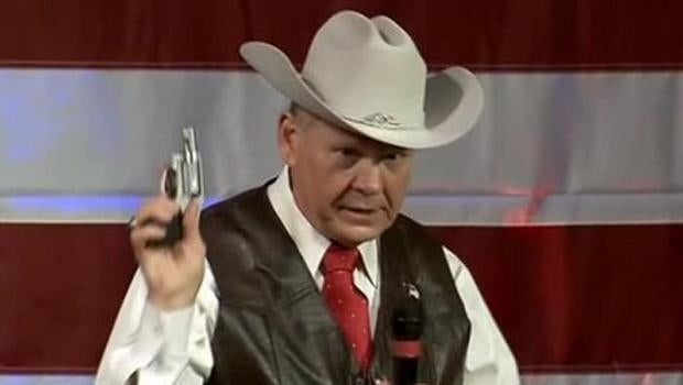 Roy Moore pulls out gun on stage at rally on Alabama election eve
