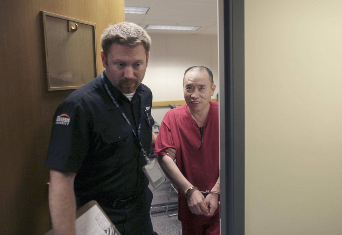 Lai Changxing is led away in handcuffs from an immigration hearing in Vancouver on July 11, 2011.