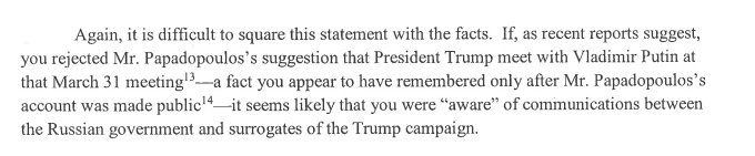 If he didn't remember the discussion before Papadopoulos revealed it, how is it he remembers rejecting his recommendation now?