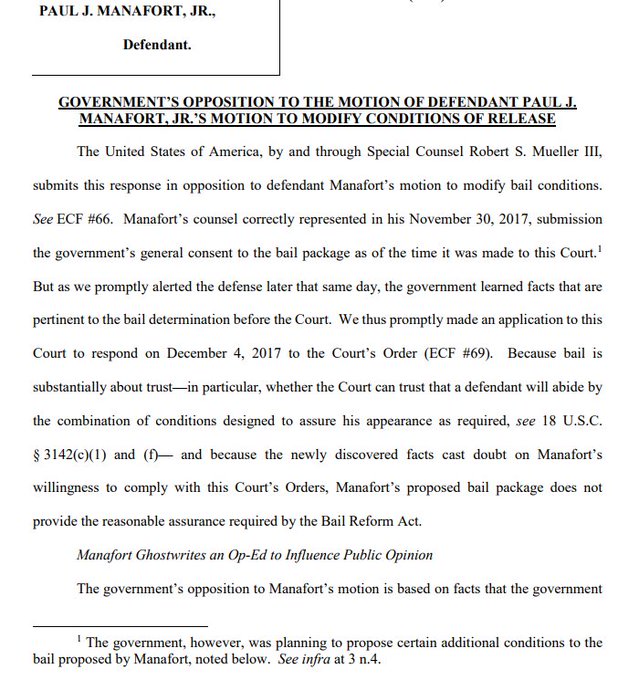 #BREAKING Special Counsel's office withdraws support from joint bail agreement with Paul Manafort, says it became aware of his ghostwriting Ukrainian editorial