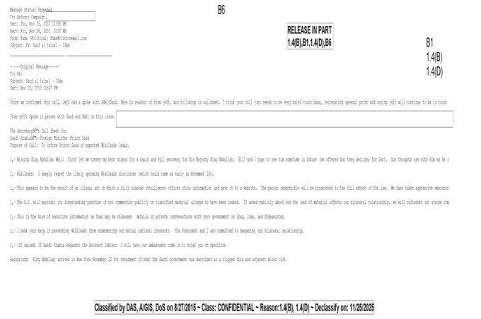 Read Replies (1) | Respond to of 1572719 PAY FOR PLAY: Clinton Warned Saudi's about WikiLeaks Exposure 8 theblacksphere PAY FOR PLAY: Clinton Warned Saudi’s about WikiLeaks ExposureWonder why the Saudis donated so much money to The Clinton Foundation?Here’s what Politifact wrote in their attempt to cover for the Clintons: Using Trump’s Saudi Arabia example, Saudi Arabia shows up as having given between $10 million and $25 million since the foundation started. When it began in 1997, the foundation’s main goal was to build the Clinton presidential library, although it left open the option to “engage in any and all other charitable, educational and scientific activities” that nonprofits are allowed to do under federal law. The Washington Post reported that Saudi Arabia gave about $10 million to build the library. (According to the Post, the Saudis gave a similar amount to the George H.W. Bush library.) After the library donation, the Saudis gave very little and stopped giving entirely during the time Clinton was secretary of state. She stepped down in early February 2013. Undoubtedly the Clintons built a pay-for-play scheme. And in one of the latest revelations by WikiLeaks, we learn that the Clintons provided cover for their “clients”. 29 Dec Christal Hayes ?@Journo_Christal Replying to @Journo_Christal @USATODAY Here's a third email marked classified. It was also found on Anthony Weiner's computer. This email is about a call between Hillary Clinton and Israeli Prime Minister Benjamin Netanyahu. More: t.co pic.twitter.com/r0bUXR2mNE Christal Hayes ?@Journo_Christal A fourth classified email This message details planned call between Clinton and Saudi Foreign Minister Prince Saud al-Faisal, where she was going to warn him about Wikileaks' release of sensitive documents, which are now known as "Cablegate." t.co pic.twitter.com/O9wddX19QN 8:16 PM - Dec 29, 2017 5555 Replies 1,2201,220 Retweets 1,5031,503 likes Twitter Ads info and privacy We wrote earlier about Cablegate, where the Hillary Clinton-controlled State Department colluded with the New York Times to run interference on potential negative news. In the latest WikiLeaks, you will see that NY Times’ Scott Shane actually worked with Hillary Clinton’s team on news.In this particular leak, note how Shane provides in advance what the NYT will print. The list is a rundown, and allowed the Clinton state department to get a heads up on news. View image on Twitter WikiLeaks ?@wikileaks New cable shows New York Times "reporter" Scott Shane handed over Cablegate's secret country by country publication schedule to the US government giving the State Department (then headed by Hillary Clinton) up to a week in advance to spin the revelations or create diversions. 10:01 PM - Dec 30, 2017 252252 Replies 4,8324,832 Retweets 5,1235,123 likes Twitter Ads info and privacy This is the media industrial complex set up by the Clintons. And reporters and Leftist news outlets were all too happy to help, because they are inherently lazy. The saying, “You scratch our back…” applied. Don’t think America’s media uncovered this latest dirt. We have Judicial Watch and WikiLeaks to thank instead.As USA Today reported , Several emails with classified information from former Hillary Clinton aide Huma Abedin were among a tranche of documents released Friday that were found on Anthony Weiner’s personal computer during an FBI probe. The State Department released about 2,800 emails, only a few of which included classified information, as part of a successful lawsuit by conservative legal group Judicial Watch. The public release of the documents uncovered by the FBI included Clinton’s daily schedule, conversations about media interviews, traveling arrangements and talking points for calls with heads of nations around the world. Some names and details were redacted, while other messages were entirely redacted or marked with classified information. After the emails were made public, Judicial Watch President Tom Fitton called the release a “major victory.” “Judicial Watch has forced the State Department to finally allow Americans to see these public documents,” Fitton said . “That these government docs were on Anthony Weiner’s laptop dramatically illustrates the need for the Justice Department to finally do a serious investigation of Hillary Clinton’s and Huma Abedin’s obvious violations of law.” We haven’t entered 2018 yet, and one can already see where things are headed for Democrats. As Nancy Pelosi would say, “Armageddon!”, at least for Democrats.