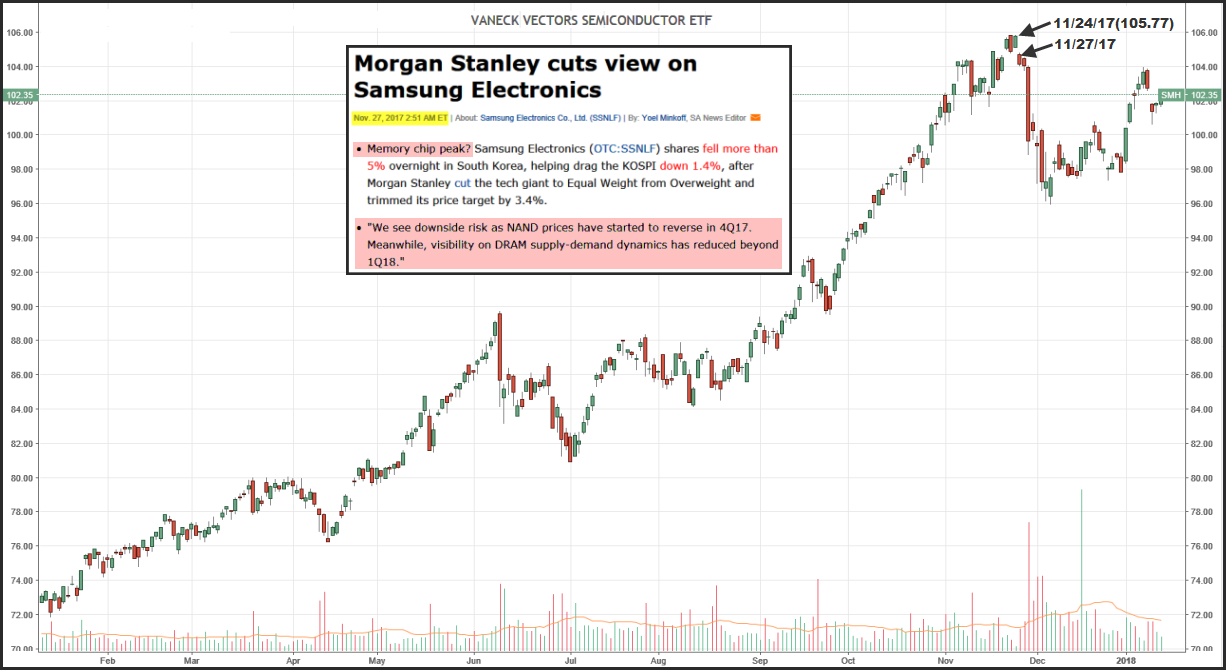 Using SMH as an indicator in chart form, the result of the Morgan Stanley article on Nov 27 is still being felt. This article was a "trigger" to bring the whole sector into a substantial pullback that has still not recovered. As IH described, the sector is "floundering".