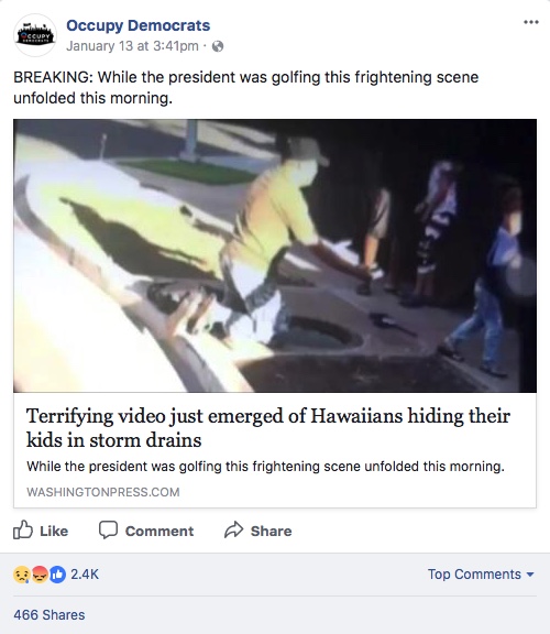 You see that? They're blaming Trump for not interrupting his golf game because some idiot in Hawaii pushed the big red button.