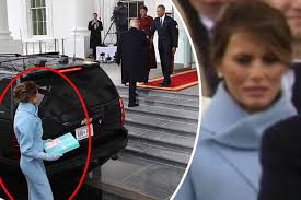 Melania was following Barron up the stairs. The Baby President was the only one with an umbrella.