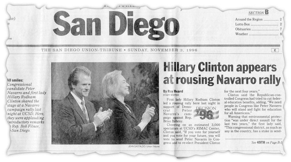 Navarro ran for office in San Diego, California three times as a Democrat. In 1992, he ran for mayor as an Independent, finishing first (38.2%) in the all-party primary, but losing (48.0%) to Republican Susan Golding in the runoff. [21] In 1996, he ran for the 49th Congressional District as the Democratic Party nominee (41.9%), but lost to Republican Brian Bilbray (52.7%). [22] In 2001, Navarro ran in a special election to fill the District 6 San Diego city council seat, but lost in the primary. [23]