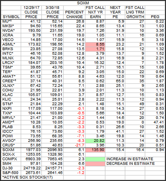 This is the weekly update of the SOXM stocks and major indices performance since the 1st of the year to Friday's close in actual and percent terms in table and chart formats.