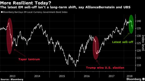 To: robert b furman who wrote (771 ) 5/9/2018 12:15:00 AM From: elmatador Respond to of 13775 Ignore the Emerging-Market Selloff; This Time (Really) Is Different By Paul Wallace Netty Idayu Ismail and Lilian Karunungan May 7, 2018, 7:07 PM GMT+3 Updated on May 8, 2018, 12:29 PM GMT+3 AllianceBernstein says governments have stronger buffers now Many EM nations have reduced their current-account deficits Powell Discusses Fed Dots and Emerging-Market Economies Federal Reserve Chairman Jerome Powell speaks about the U.S. interest-rate path and its impact on emerging markets. This emerging-market rout may not have much further to go. Investors from AllianceBernstein LP to Morgan Stanley and UBS Wealth Management say that while the pain developing-nation assets are experiencing isn’t entirely over, the selloff won’t be anywhere near the magnitude seen during the taper tantrum of May 2013. Back then, emerging-market currencies and bonds slumped for about six weeks as the dollar and U.S. rates rose in response to the Federal Reserve unexpectedly suggesting it would reduce debt purchases. The trigger this time was once again a strengthening greenback and higher U.S. yields. Investors have pulled more than $5.5 billion from bond markets since mid-April, according to the Institute of International Finance. But emerging-market governments now have stronger buffers, which bodes better for their assets, according to AllianceBernstein, which manages about $550 billion of investments. “The biggest issue is that current-account balances are in much better shape than they were in 2013,” said Christian Diclementi, an AllianceBernstein money manager in New York. “Generally, emerging markets are much better positioned today to withstand external shocks. We view it as an opportunity to add exposure to countries that are being overly penalized by a movement in the dollar and U.S. rates.” Nations from Brazil to India to South Africa have reduced their current-accounts deficits in the past five years, while Thailand has turned its shortfall into a surplus of more than 10 percent of gross domestic product. That helps reduce their reliance on foreign investment to plug the gap. Moreover, stable inflation rates and robust growth continue to make their assets attractive, especially for funds looking to diversify from developed markets still offering yields close to historical lows. Policy makers are also reacting better than in the past, according to Diclementi. Argentina’s move last week to defend the peso by hiking its key interest rate to 40 percent and committing to reducing its fiscal deficit exemplifies that. “It showed a cohesion and an understanding of what was needed to arrest the negative sentiments that had built up,” Diclementi said. “Policy making in emerging markets is of a higher quality today than four or five years ago.” There are notable exceptions, Turkey being an obvious one. Investors are put off by its 11 percent inflation, by President Recep Tayyip Erdogan’s coercion of the central bank not to raise interest rates, and by fears that his decision to call a snap election for next month is a power grab. “We continue to be quite cautious on Turkey,” said Jean-Charles Sambor, the deputy head of emerging-market fixed income in London at BNP Paribas Asset Management. But developing currencies as a whole are “massively undervalued” for buyers who have a one- or two-year horizon, he said. “There could be some volatility in the next couple of weeks. Overall, we see that as a buying opportunity.” So does Morgan Stanley. Its analysts said on Monday that emerging-market bonds and currencies will perform better in the coming weeks and recommended that clients short the euro against the South African rand and Philippine peso. Not everyone is convinced. Boston-based Eaton Vance Corp., which manages $434 billion, has cut exposure to developing nations because it foresees more volatility, Eric Stein, co-director of global income, said in an interview. Still, for those that feel the dollar’s climb is unsustainable given a growing fiscal deficit in the U.S., emerging markets look appealing. “We don’t think this is a 2013 type of scenario,” Alejo Czerwonko, a strategist at UBS Wealth Management in New York, said in an interview with Bloomberg Television on Monday. “We’re thinking of indicators such as current-account positions, much improved from 2013 levels, or real interest rates, a lot higher than they used to be, or foreign-exchange coverage ratios. All these factors taken together are a lot better than in the 2013 taper tantrum.”