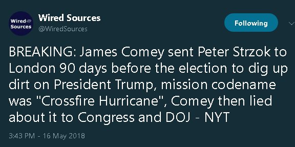 1. So a few important points on that new NYT "Hurricane Crossfire" piece. A story that, BTW, all of us following this knew had to be coming. This is DOJ/FBI leakers' attempt to get in front of the facts Nunes is forcing out, to make it not sound so bad. Don't buy it. It's bad.