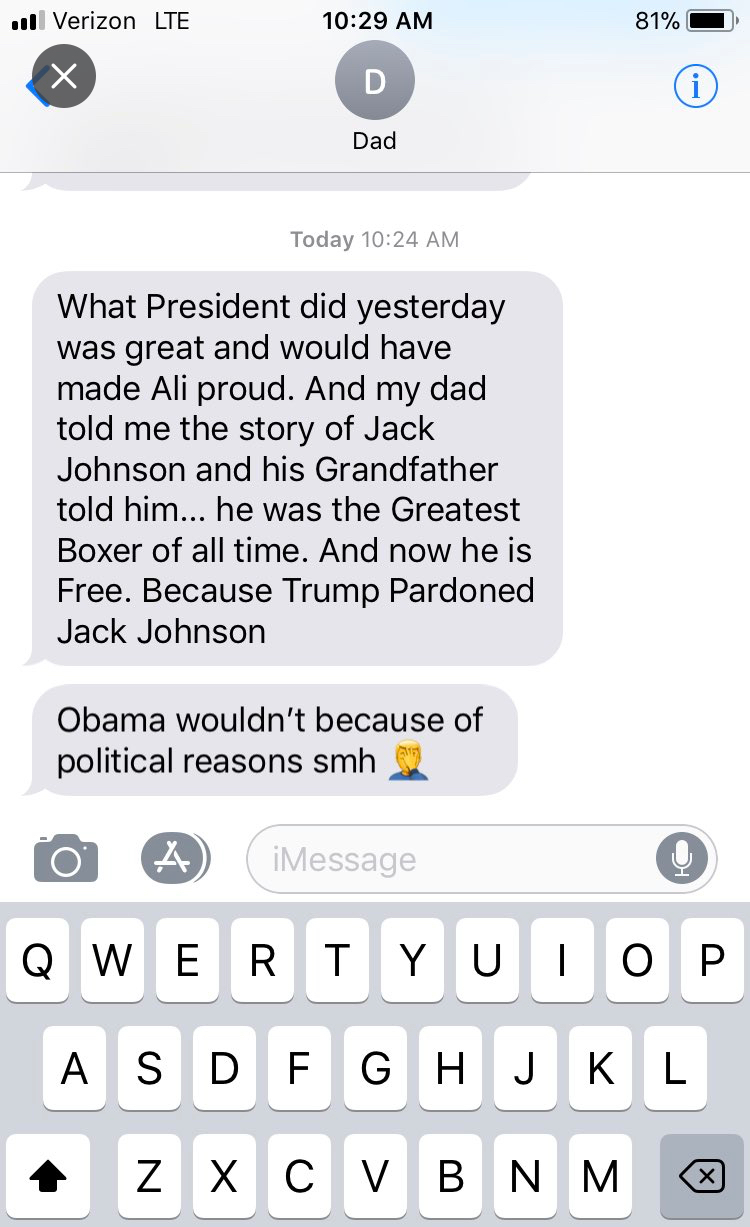 Text message from my father, a registered Democrat.