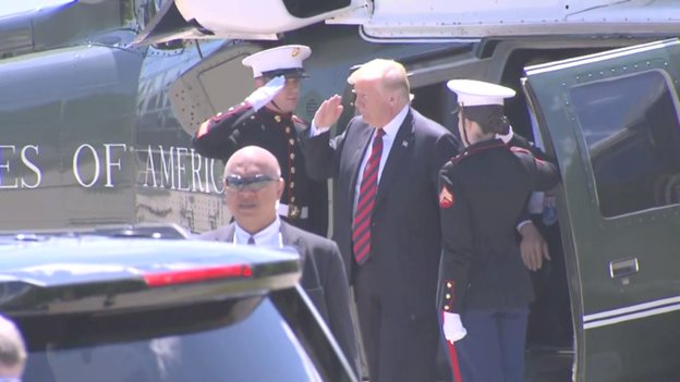 Pres Trump arrives in Charlevoix too late for his scheduled meeting with French Pres Macron. WH says they'll try to re-schedule.