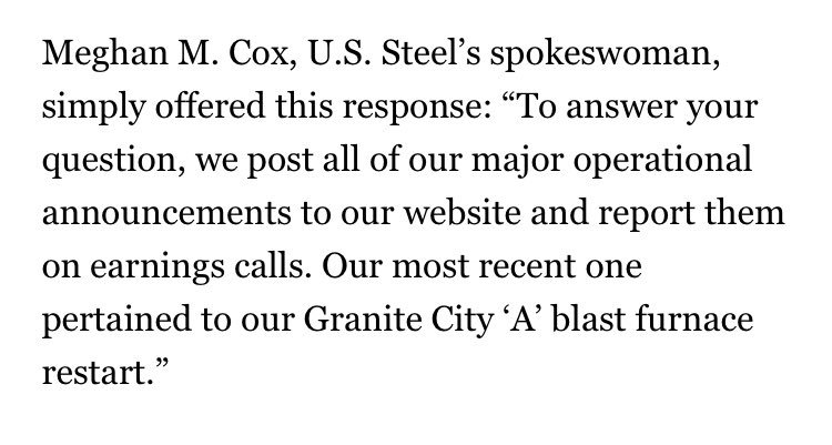 In the most inoffensive possible way, US Steel confirms to @GlennKesslerWP that Trump is wrong about the company opening “six” (or, last night, “seven”) plants. Trump keeps saying the company CEO called to tell him about these fictional openings. t.co