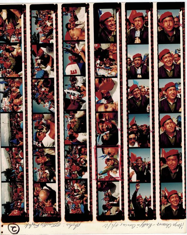 Contact sheet of photos from a Chávez rally on Aug. 6, 1998.PHOTOGRAPHER: TIMOTHY FADEK